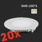 20X Podometni LED panel / SMD čip / Belo ohišje / 3W / 210lm / 120° / Nevtralna bela 4000K