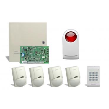 Alarmna centrala s tipkovnico (PC1414RKZ) in kovinskim ohišjem, 4 področja, razširljiva do 8 področij, podpora štirim tipkovnicam, podpora štirih telefonskih številk, spomin za 128 dogodkov, dva programabilna izhoda 50mA in 300mA, možnost razširitve preko modulov PC5208 in PC5204, 39 uporabniških gesel, eno glavno geslo, konstantno spremljanje možnih napak sistema, funkcije za preprečevanje neželjenih alarmov, podpora požarnih senzorjev, 29 različnih tipov področij in 11 programabilnih možnosti področja, možnost programiranja preko računalnika z DLS-2002 programsko opremo, programabilna v skladu z EN50131-1 standardom.