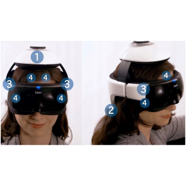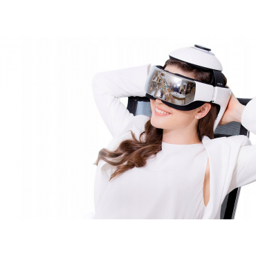 Naprava uporablja tehnologijo tlačne masaže, vibracij in vročega stiskanja za masažo področja glave in oči.