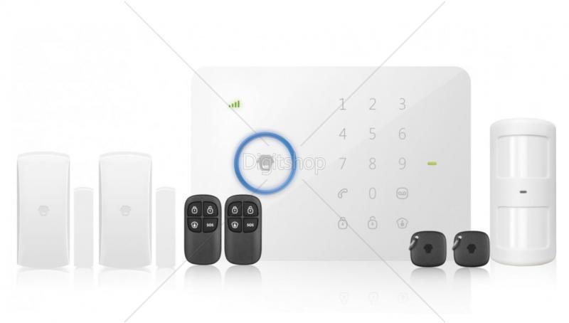 GSM/SMS ALARMNA CENTRALA + RELE IZHOD + RFID ČITALEC KARTIC/KLJUČKOV + PIR SENZOR + MAGNETNI SENZOR + 2 X DALJINSKI UPRAVLJALNIK
