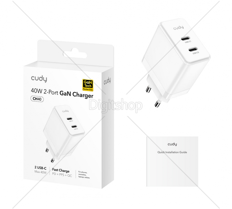 CUDY CH40 2-PORT USB-C POLNILEC - NAPAJALNIK 40W