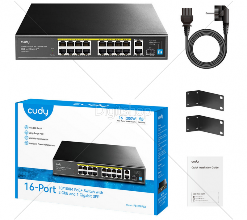 S svojo zanesljivostjo in omogočanjem visoke kakovosti prenosa je 16-portno preklopno stikalo PoE FS1018PS1 idealna rešitev za uporabo v napeljavah CCTV IP. 16 portov podpira funkcijo Power over Ethernet (PoE).