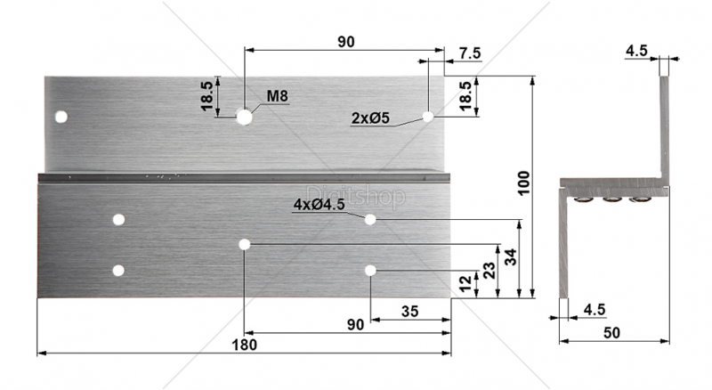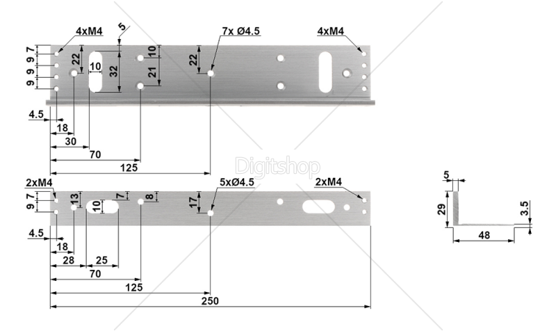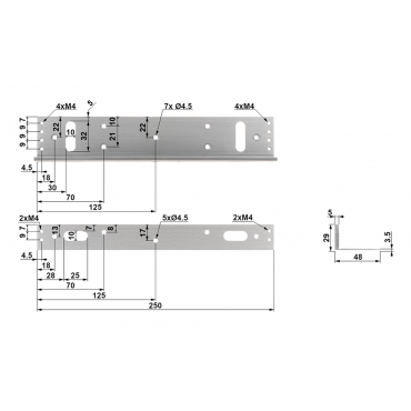 Dimenzije: 250  x 48  x 28 mm - L-nosilec; 180  x 100  x 50 mm - Z-nosilec