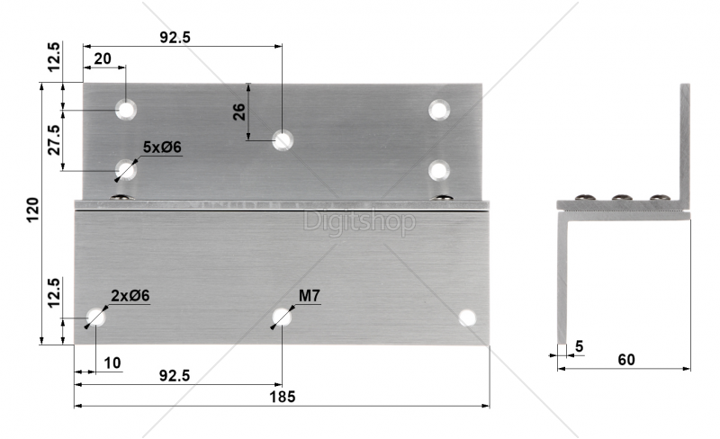 Dimenzije: 265  x 70  x 42 mm - Z-nosilec; 185  x 120  x 60 mm - L-nosilec