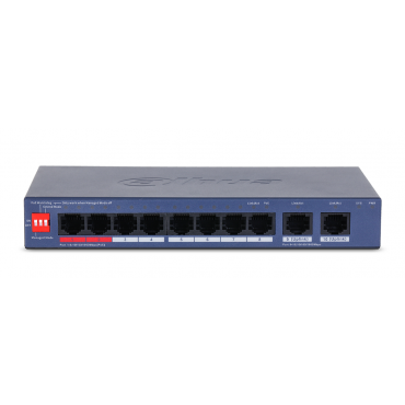 • 8 × RJ-45 Gigabit PoE priključkov, 2 × RJ-45 Gigabit priključka (uplink)