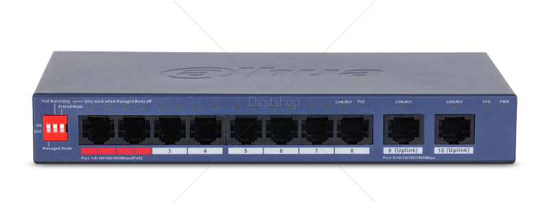 • DIP stikalo za hitro aktiviranje/izklop načinov: Cloud-Managed, PoE Watchdog, PoE doseg 250 m