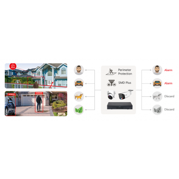 Zaščita oboda: Tripwire, vdori, hitro premikanje, loitering odkrivanje, zaznavanje parkiranja in zbiranje ljudi.