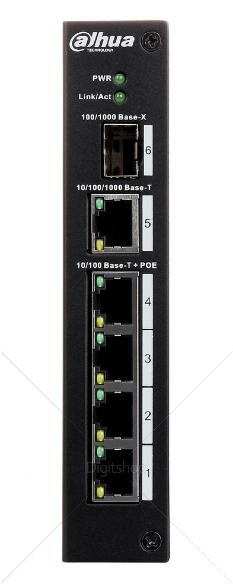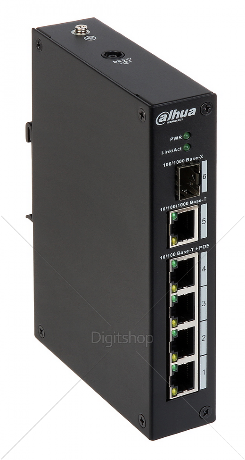 Switch PoE DH-PFL2106-4ET-96 je naprava industrijskega tipa, ki zagotavlja tekoči omrežni prenos s hitrostjo 10 / 100 / 1000 Mbps. Naprave serije PFL so bile zasnovane z mislijo na sisteme, pri katerih se pojavljajo velike razdalje med switchem in napravami, napajanimi prek PoE. Tovrstne naprave se lahko uporabljajo v sistemih, ki se izvajajo v industrijskih objektih v neugodnih pogojih kot so visoke ali nizke temperature.