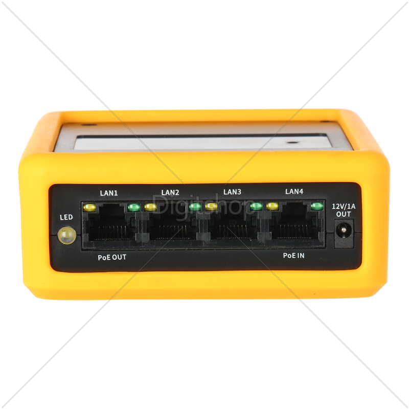 Vse-v-enem tester za montažo kamer / napajanje kamer 12 V DC, PoE ali USB / prikaz slike v živo prek aplikacije DoLynk Care / testiranje in nastavitev IP kamer (ONVIF, Dahua) / Wi-Fi hotspot za povezavo telefona / vgrajena baterija do 22 h delovanja / kom