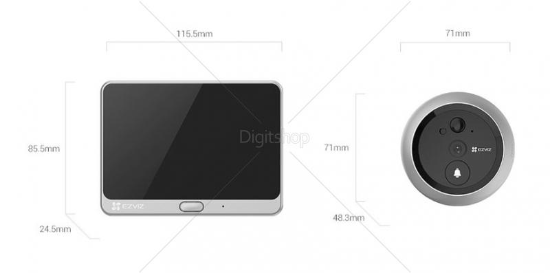 Dimenzija: Zaslon in podstavek: 115,5 x 85,5 x 24,5 mm Kamera: 71 x 71 x 48,3 mm
