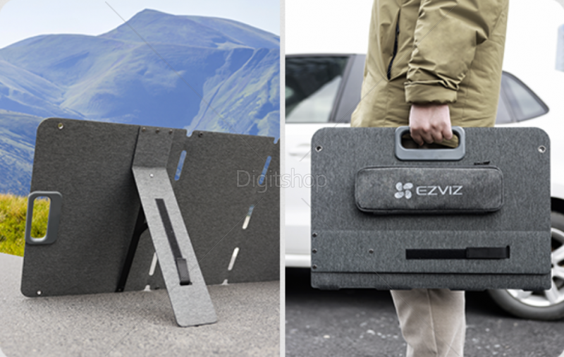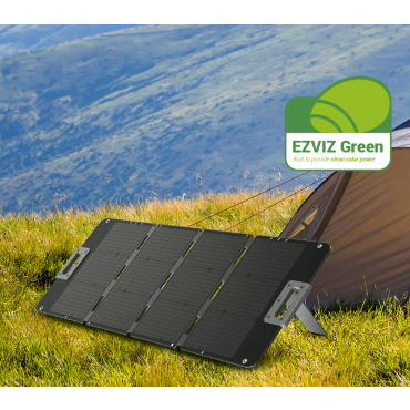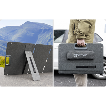 Visoko učinkovit prenosni solarni panel DS-100W podjetja EZVIZ gre z vami na izlete, kampe in vse odročne kraje brez elektrike! Njegova zložljiva zasnova, enostavna za prenašanje, in nastavljivo vgrajeno stojalo pomagata ujeti največjo količino sončne svetlobe. V kombinaciji z EZVIZ prenosno polnilno postajo pridobite čisto in zanesljivo energijo z izkoriščanjem moči sonca.