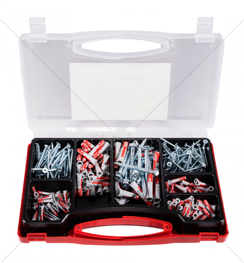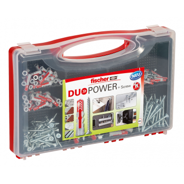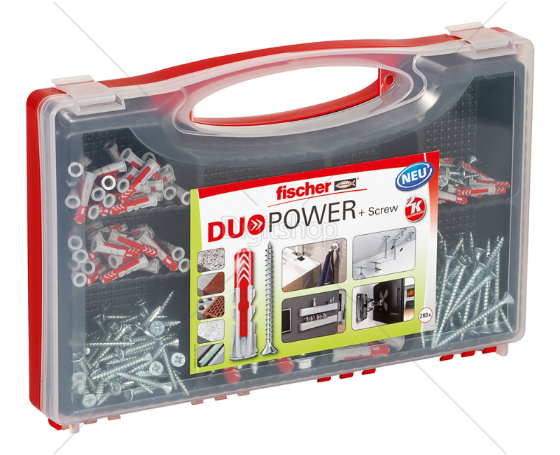 fischer DuoPower – set z vložki in vijaki (280 kosov) Praktičen komplet najpogosteje uporabljenih vložkov DuoPower in pripadajočih vijakov v kakovostni škatli. Predhodno razvrščeni premeri omogočajo hitro izbiro brez iskanja. Prozoren pokrov omogoča hiter pregled nad vsebino. Škatla je trpežna in primerna za ponovno polnjenje. Prednosti: