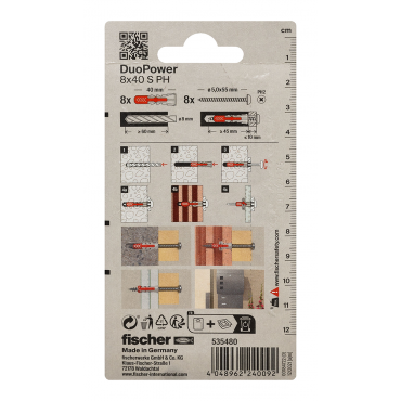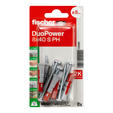 • Večja sidrna globina modelov DuoPower 6 x 50, 8 x 65 in 10 x 80 omogoča uporabo v votlih gradbenih materialih, poroznem betonu in za premostitev ometa.