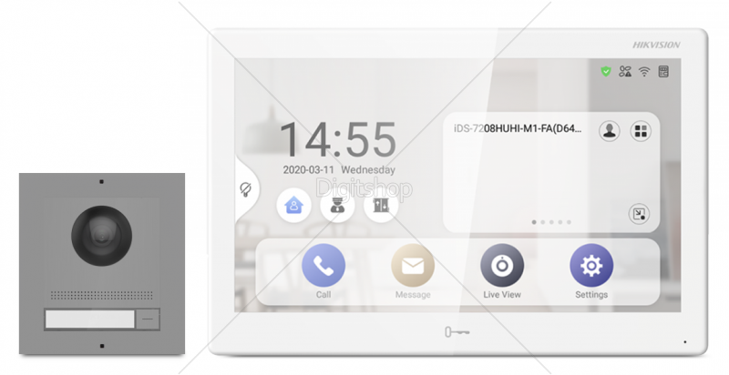 Modul s kamero, zvočnikom ter mikrofonom / podometno ohišje / 10 palični barvni IPS zaslon na dotik / UTP povezava / operacijski sistem Android / spomin / možnost alarma / napajalnik
