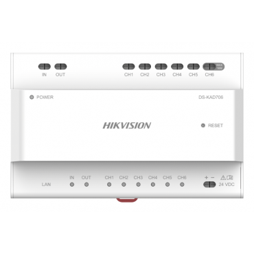 Naprava ima 6 2-žičnih glavnih vodov za priklop monitorjev in zunanjih panelov (napajanje in prenos signala) ter 1 vtičnico Ethernet za priklop omrežja LAN. Poleg tega je en izmed portov prilagojen za napajanje obsežne postaje za upravljanje vstopnih vrat z maks. porabo moči 16W. Poleg tega je switch opremljen z dodatnimi izhodi dvožičnega glavnega voda, namenjenimi za kaskadno povezavo z DS-KAD706-S.