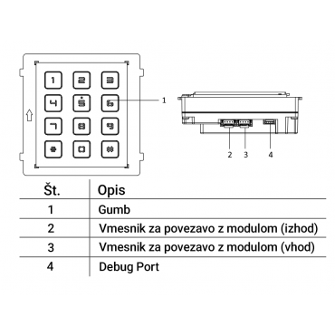 Izhodna napetost: 12 VDC (napajanje preko drugega modula)