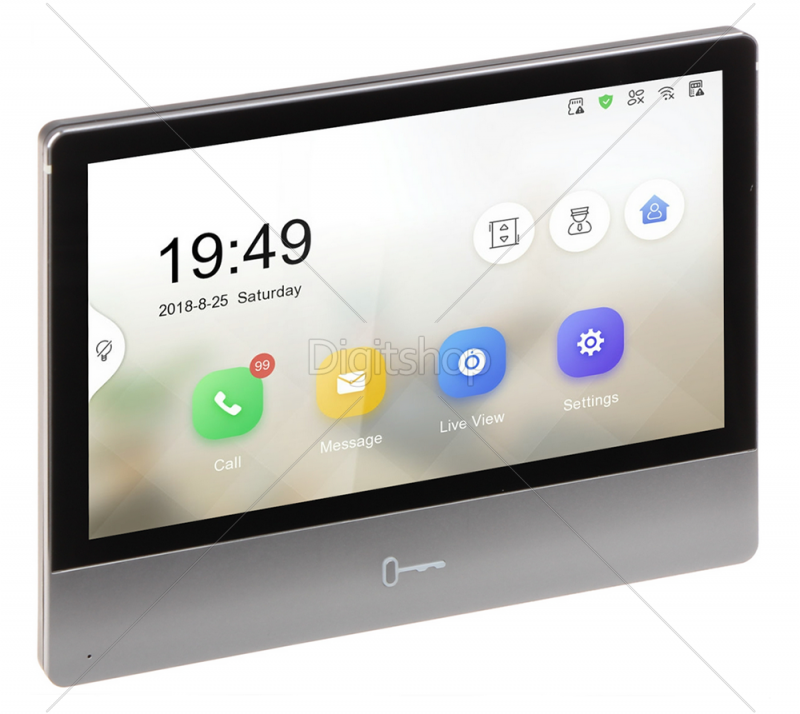Naprava deluje skupaj z video domofoni in drugimi paneli IP Hikvision standarda. Lahko tudi vrši funkcijo enostavne alarmne centrale ali modula za obveščanja s podporo 8 alarmnih vhodov.