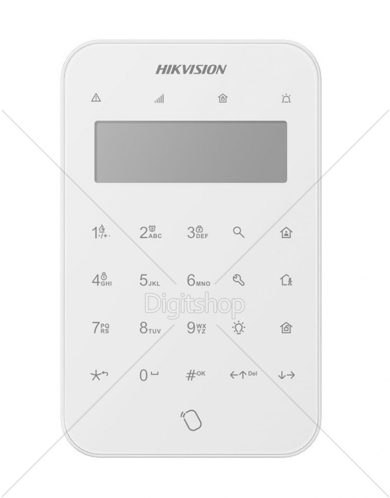 Številčna tipke: Številčna tipke: 0 do 9; Funkcijske tipka: *, #, Poizvedba, Away arm, Stay arm, Disarm, Output, Project, Right, Left