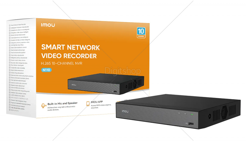 N110 podpira dostop do 10 kanalov. Vgrajena mikrofona in zvočnik omogočata dvosmerno glasovno komunikacijo brez potrebe po dodatni zvočni opremi. Podpira samodejno seznanjanje IMOU kamer, kar omogoča hitrejšo in enostavnejšo povezavo kamer z NVR. N110 ima HDMI in VGA video izhod ter je združljiv z večino zaslonov na trgu. Omogoča dostop prek aplikacije, s katero lahko uporabniki NVR upravljajo od kjerkoli.