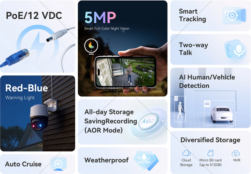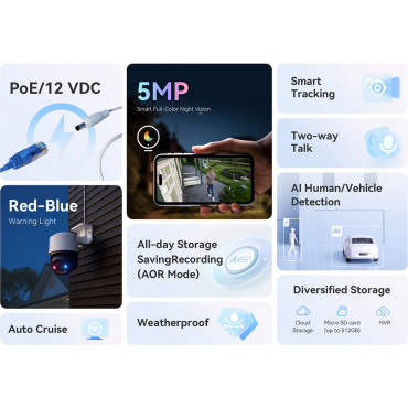 Imou PS7F 5MP je zmogljiva zunanja varnostna kamera, ki zagotavlja izjemno ostro 5 MP sliko in zanesljiv nadzor podnevi ter ponoči. Zahvaljujoč AI zaznavanju ljudi in vozil pošilja natančna obvestila brez nepotrebnih lažnih alarmov, medtem ko barvni nočni način poskrbi za jasne podrobnosti tudi v temi. Podpira PoE napajanje za enostavno namestitev z enim kablom ter omogoča priročno upravljanje in ogled posnetkov prek aplikacije Imou Life. Idealna izbira za varovanje doma, dvorišča ali poslovnih prostorov.