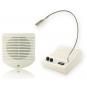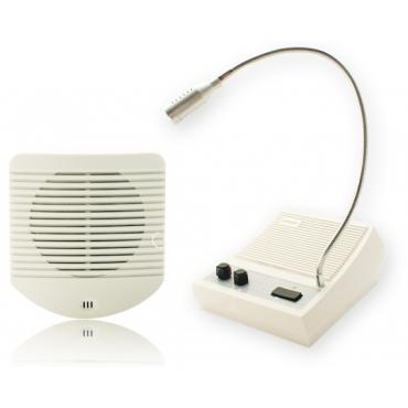 Tehnični podatki: • dve neodvisni postaji (s) • mikrofon na stojalu • izhod za snemanje pogovorov • zvočne moči: 4W zvočnik ext. (na vaši enoti), 1W zvočnik ext. (na enoti za stranke) • bela • frekvenčni odziv: 100Hz - 15kHz • napajanje: 230VAC/05A • napajanje: 12V