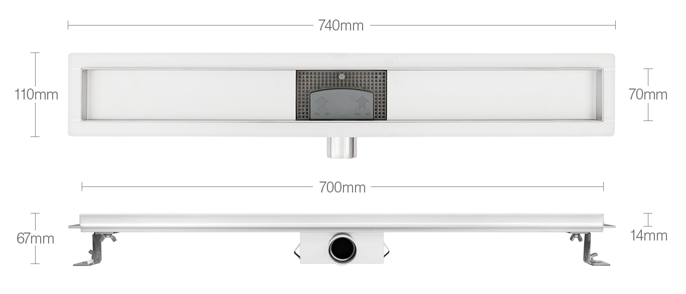 INOX ODTOK / VODOODPORNA MEMBRANA / NIZKA MONTAŽA ODTOKA / 700mm + 100% INOX pokrov