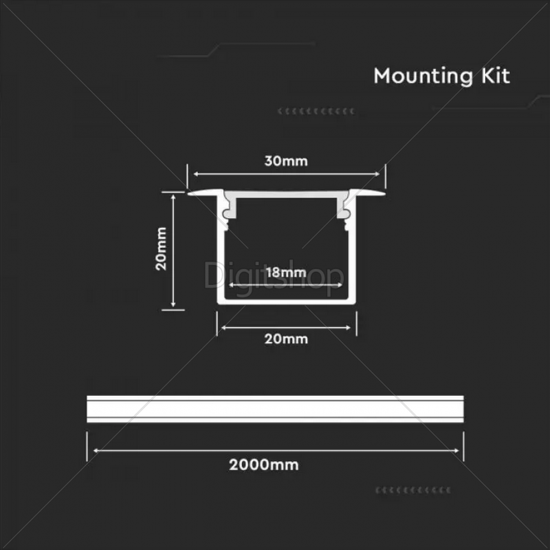 - Aluminijasti profil: 2M dolžine z mlečnim difuzorjem