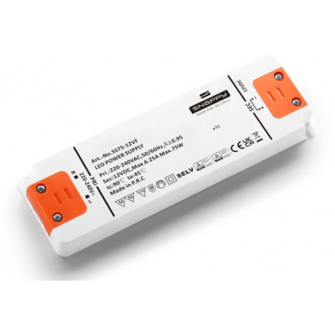 Napajalnik SS75-24VF proizvajalca Snappy, je namenjen predvsem napajanju LED trakov, LED žarnic, LED sijalk, LED modulov in ostalih LED svetil, ki za delovanje potrebujejo napajanje s konstantno napetostjo. Snappy kompaktni napajalniki za LED so zaradi oblike in kompaktnih dimenzij primerni za vgradnjo v najrazličnejša ohišja, kjer je pomanjkanje prostora. Zaradi ustreznosti varnostnim standardom jih lahko montiramo tudi neposredno na leseno pohištvo in druge vnetljive materiale.