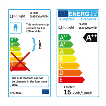 LED trak DIGITLIGHT DI-SMD2835 -120WW24 Topla bela / IP20 - 16W /24V