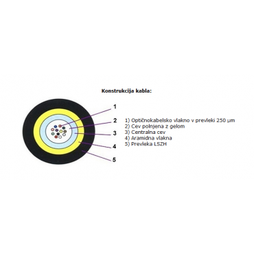 - Vrste vlaken: Večnačinovne, OM2 50/125 µm, DRAKA U-DQ(ZN)BH 8G