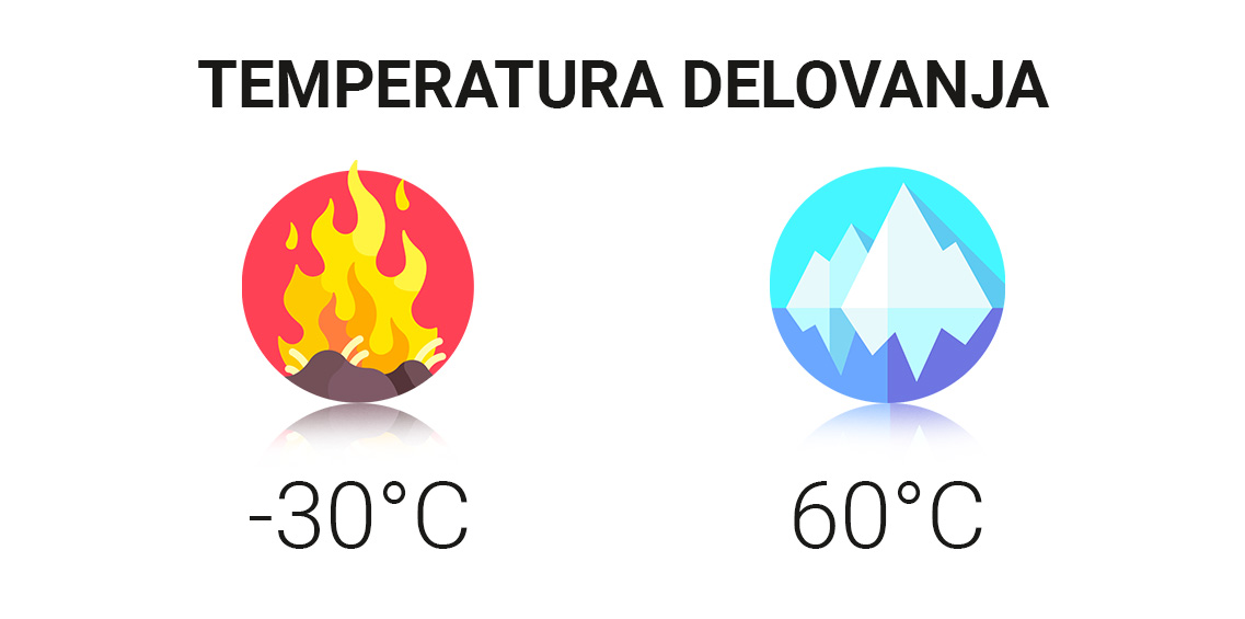 - Delovna temperatura: -30 ° C do 60 ° C