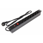 Enota za distribuiranje G10O07S je zanesljiva in kompaktna rešitev za napajanje naprav v 19" RACK omarah. Z višino 1U se enostavno vgradi v standardne omare, 7 univerzalnih (Schuko) vtičnic pa omogoča priklop različnih naprav. Opremljena je z vgrajenim stikalom za vklop/izklop in protipreobremenitveno zaščito, kar zagotavlja varno uporabo. 1,8-metrski napajalni kabel omogoča prilagodljivo postavitev.