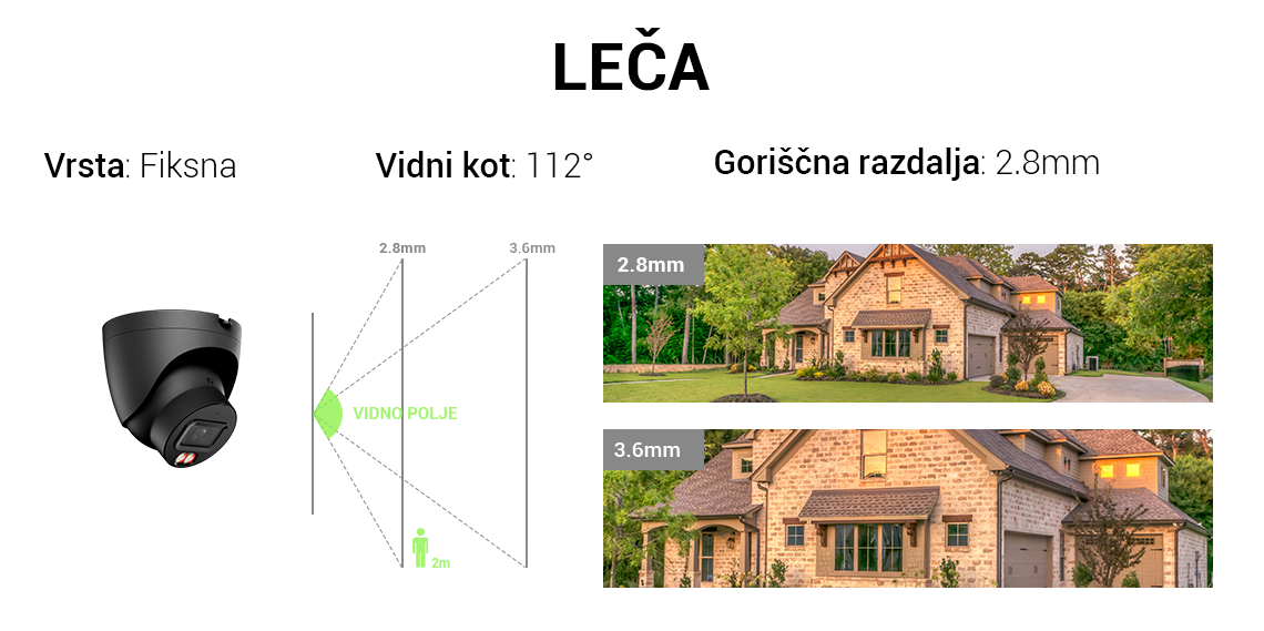 • Vidno polje: Horizontalno: 112°; Vertikalno: 58°; Diagonalno: 136°.