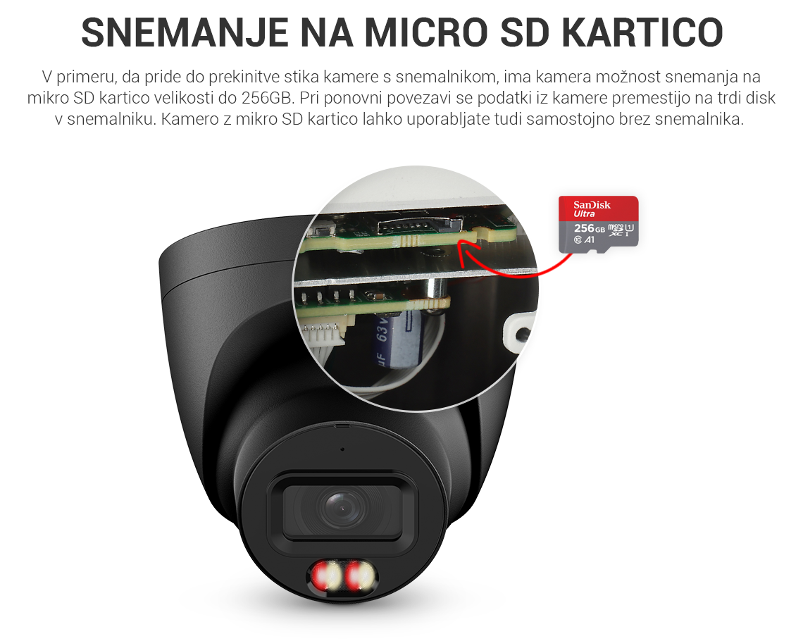 • Shranjevanje: FTP, SFTP, Micro SD (do 256 GB), NAS.