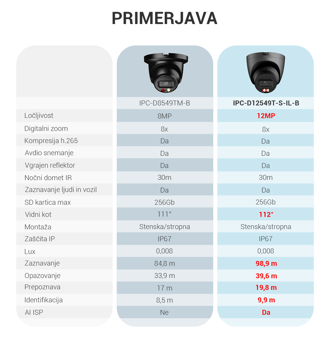 • Vgrajena večjedrna osvetlitev: največja IR razdalja je 30 m, največja razdalja tople svetlobe je 30 m.