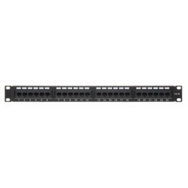 PATCH PANEL RJ-45 s 24 porti za 19" RACK omare, združljiv s kategorijo 5e, omogoča urejeno in varno povezovanje omrežnih naprav