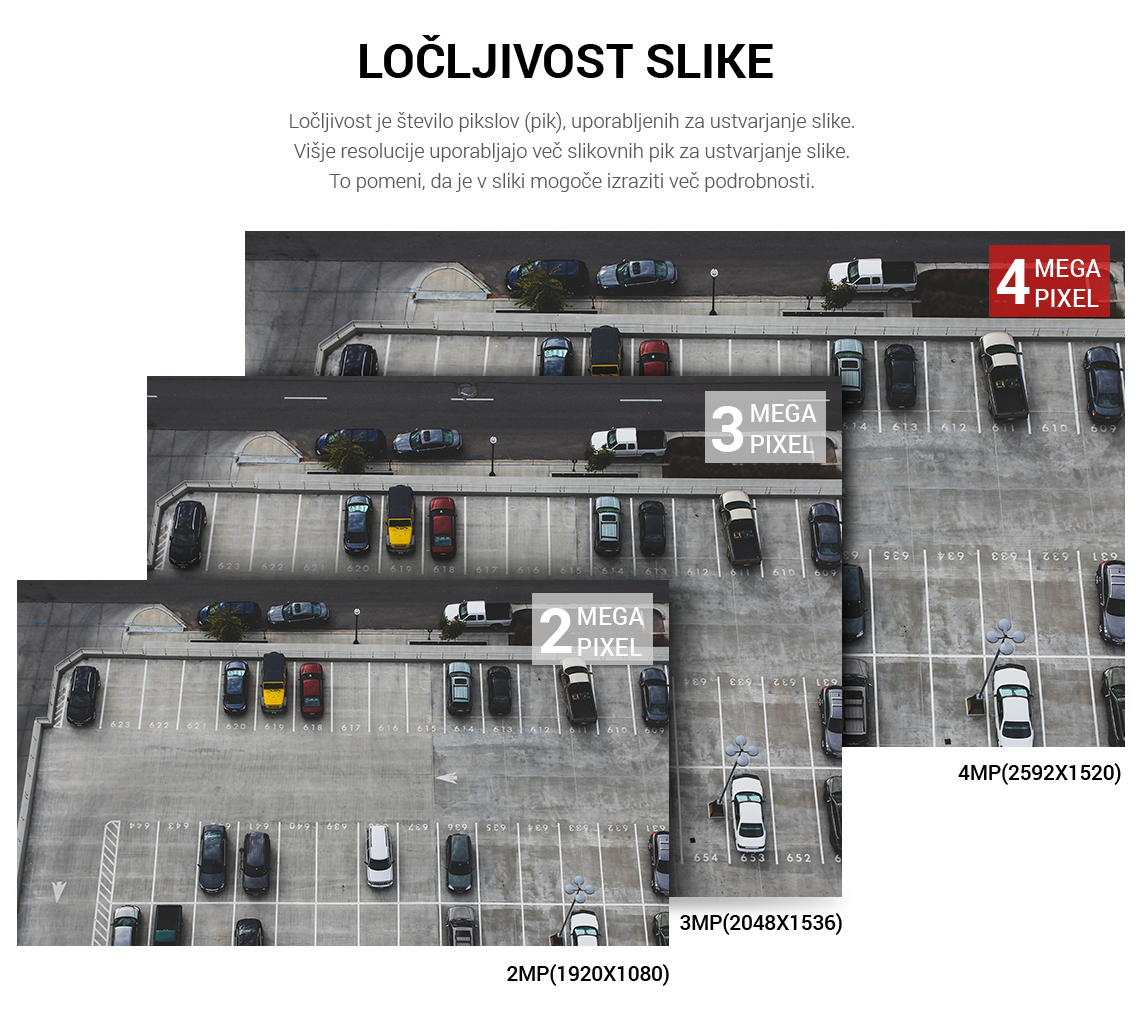 4Mp (2560×1440) - 25fps / Leča: 76.4° / IR LED domet do 30m / Min.svetloba: 0.03 LUX / HD/SD video izhod / Poraba max. 4W