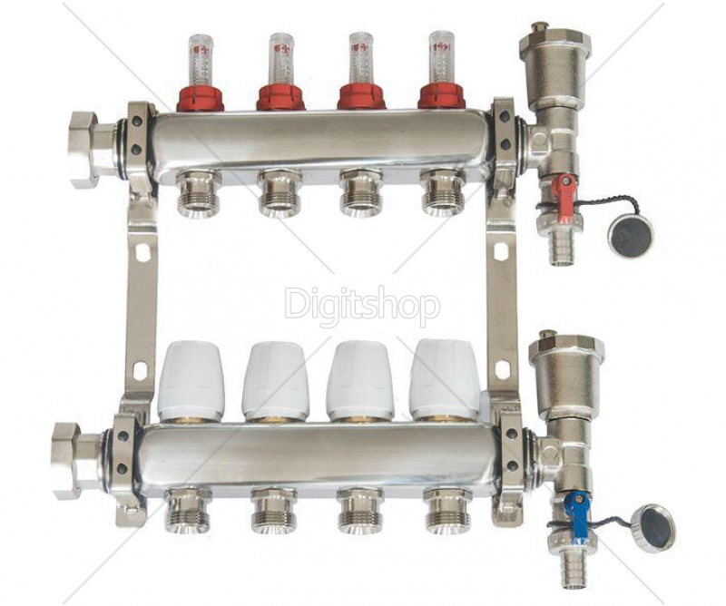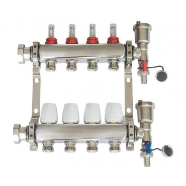 Sestavljen inox razdelilec za talno ogrevanje: 4 VEJE