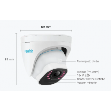 Načini shranjevanja posnetkov: MicroSD kartica (do 256GB, ni priložena), Reolink snemalna enota (NVR), FTP strežnik (server)