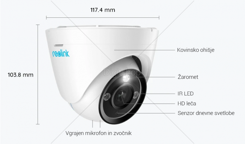 • PoE (Power over Ethernet) – za uporabo kamere ne potrebujete adapterja ali napajalnega kabla, ampak samo mrežni kabel (manj žic, nižja cena, bolj praktično)
