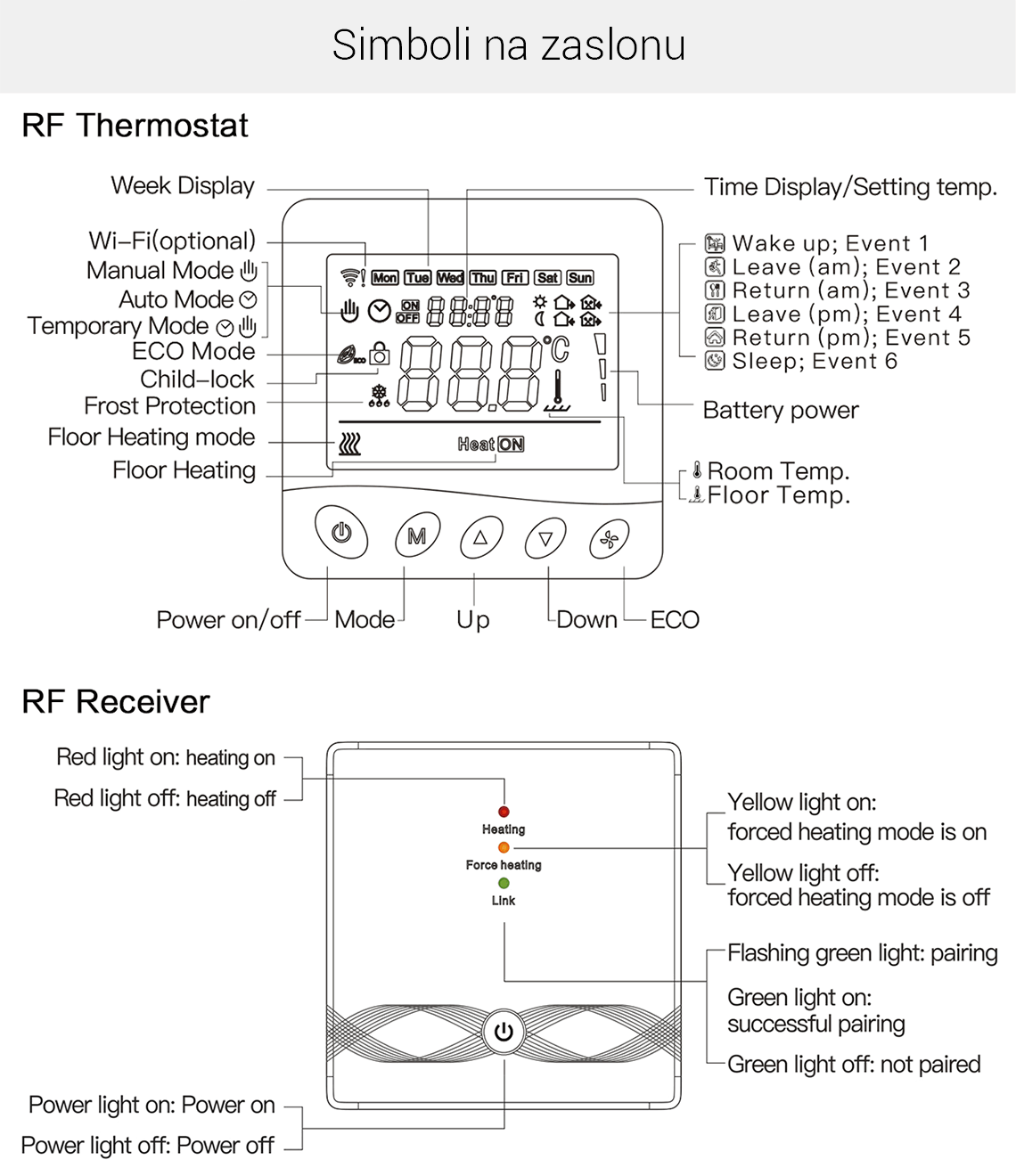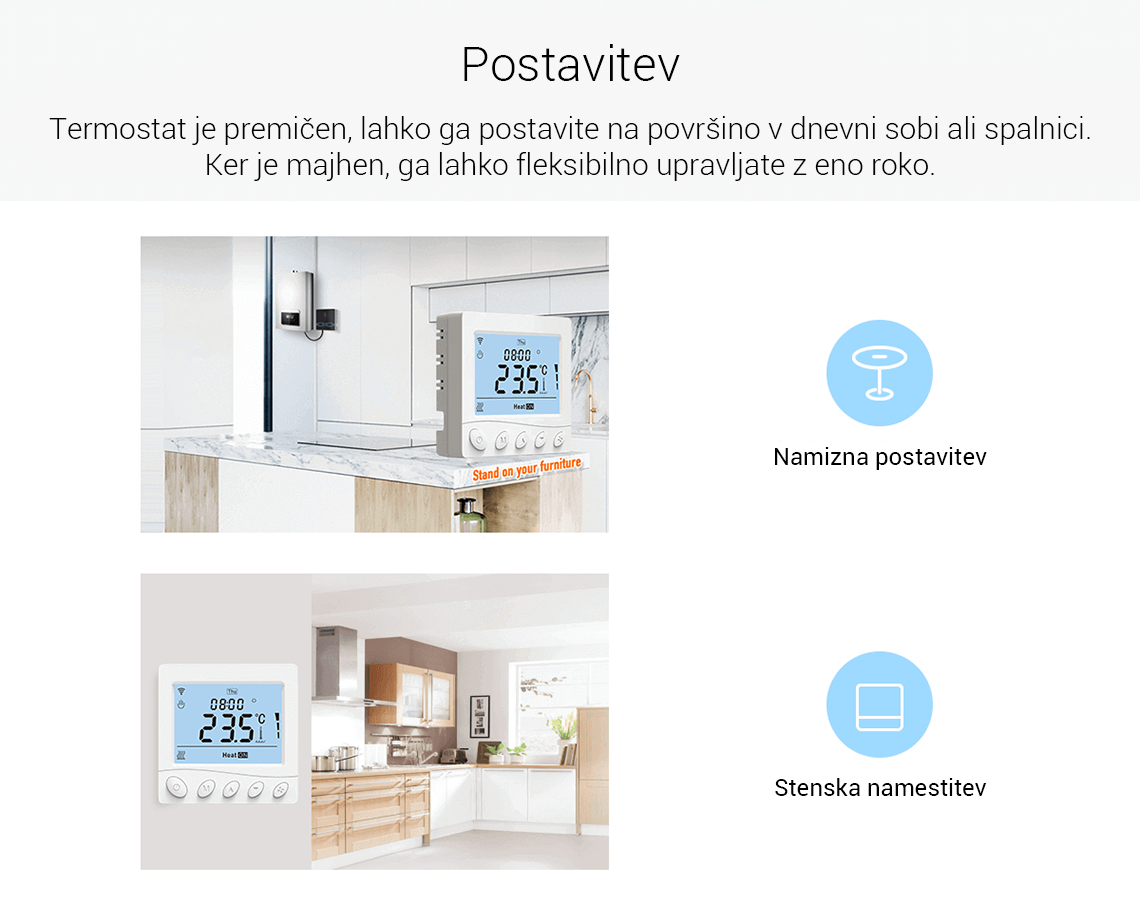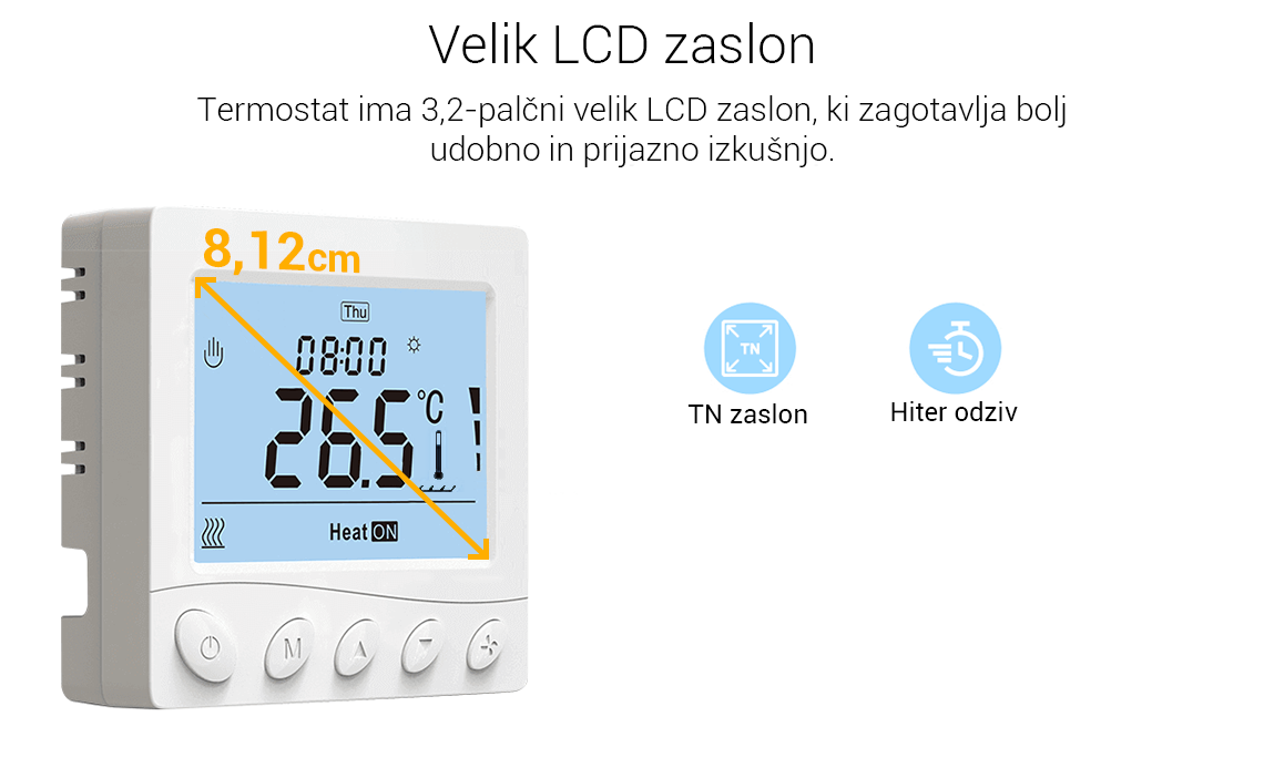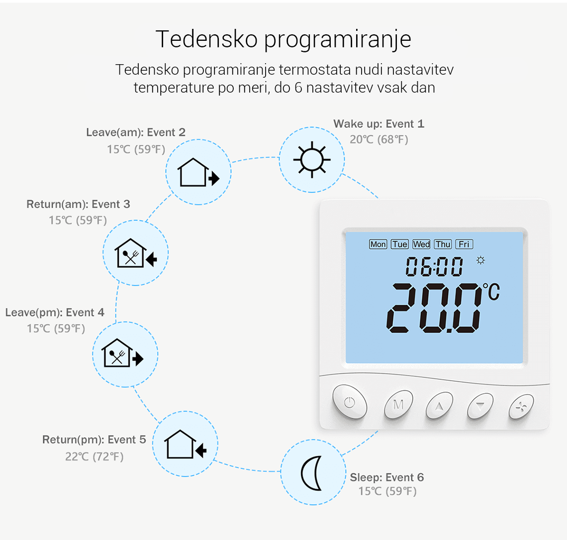 - Tedenski programabilni termostat - do 6 dogodkov lahko nastavite ločeno za vsak dan