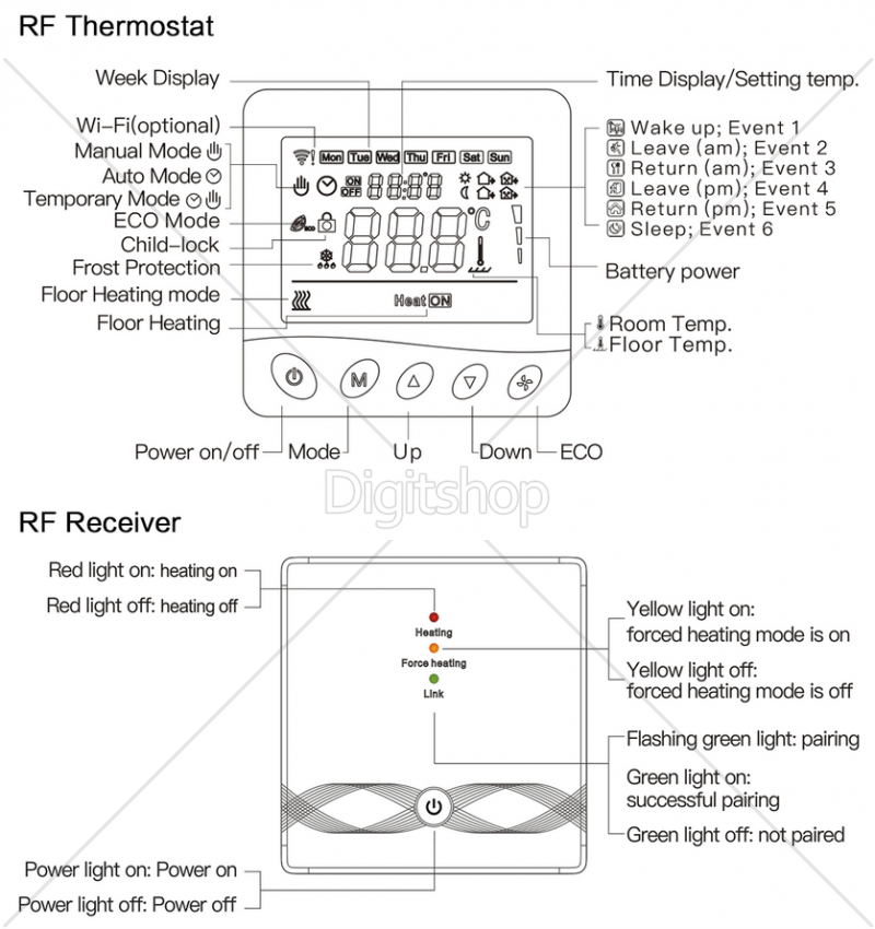 DIGITALNI TERMOSTAT Z LCD ZASLONOM / TEDENSKI ČASOVNIK / BREZŽIČNA POVEZAVA MED ENOTAMI