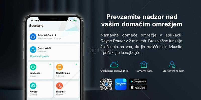 Ruijie brezžična dostopna točka RG-EW300R repeater omogoča preprosto podaljšanje brezžične povezave tako v domačem, kot tudi v delovnem okolju. Namestitev je nadvse preprosta, saj se poveže z obstoječo Wi-Fi omrežno povezavo preko WPS tipke, brez potrebe po dodatnih gonilnikih ali programski opremi. Dostopna točka je elegantno opremljena z dvema 4dBi antenama ter deluje na frekvenci 2.4 GHz, kar zagotavlja stabilno in zanesljivo povezavo za vse naprave v vašem okolju.