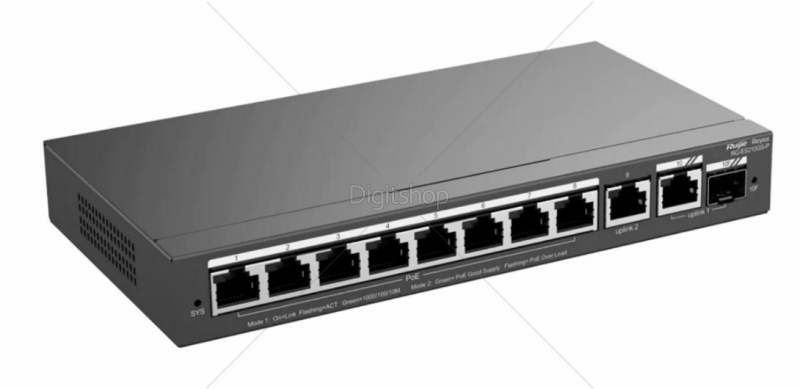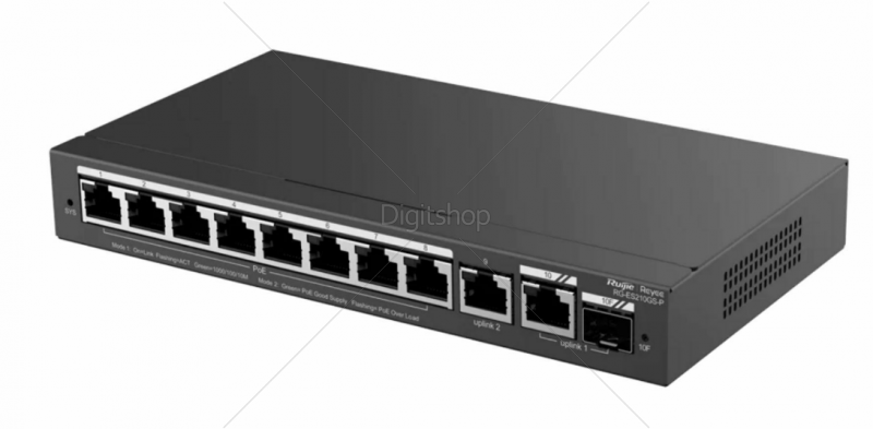 Ruijie 10-porto gigabitno stikalo s skupno močjo osmih PoE izhodov 120W je idealno za podjetja, gostinstvo, tovarne, izobraževalne ustanove, trgovine in nadzorne sisteme. Prednost je v upravljanju preko Ruijie Cloud platforme, ki vam omogoča enostavno optimizacijo in upravljanje stikala kjerkoli in kadarkoli. Zahvaljujoč avtomatskemu preprečevanju zank boste zagotovili nemoteno delovanje storitev, saj bo stikalo samodejno prepoznal in odpravil morebitne zanke v omrežju.