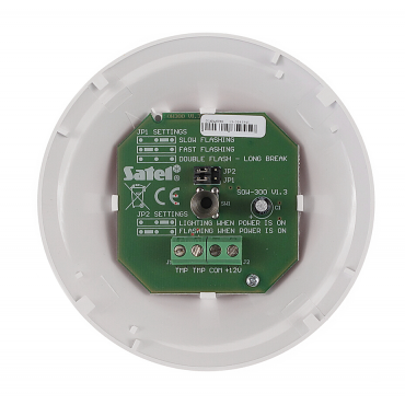 SOW-300-R je optična signalna naprava, zasnovana za notranjo uporabo. Ponuja štiri vrste signalizacije s pomočjo super svetlečih diod, med katerimi lahko izbirate (enakomerna svetloba, hitro utripanje, počasno utripanje in dve bliskavici, ki ji sledi 1-sekundna pavza). Okroglo ohišje signalne naprave SOW-300 R je zasnovano za pritrditev na steno ali strop. Naprava ima zaščito pred posegi.