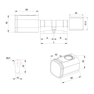 Način odklepanja: Aplikacija, prstni odtis, kartica Mifare ali ključ