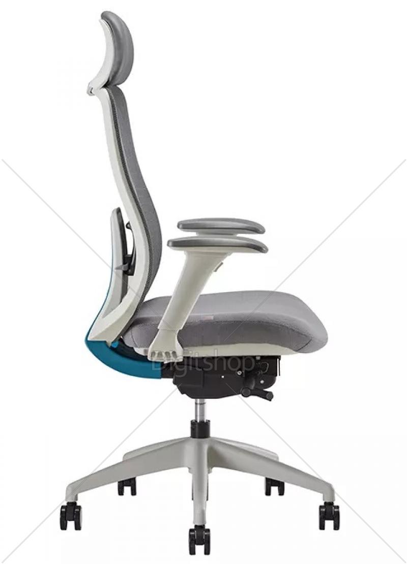 Pisarniški stol ima za vaše udobje višinsko prilagodljiv sedež, naklonsko prilagodljiv hrbtni naslon, prilagodljiv naslon