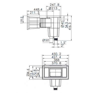 Skimmer igra pomembno vlogo pri sistemu filtracije vode in opravlja funkcijo sesanja vode in zadrževanja naplavin. Lahko se uporablja pri stanovanjskih in javnih bazenih, primeren je za površine iz betona. Narejen je iz ABS materiala odpornega na UV; Okrepljeni material zagotavlja največjo trdnost in trajnost v vseh vremenskih pogojih.