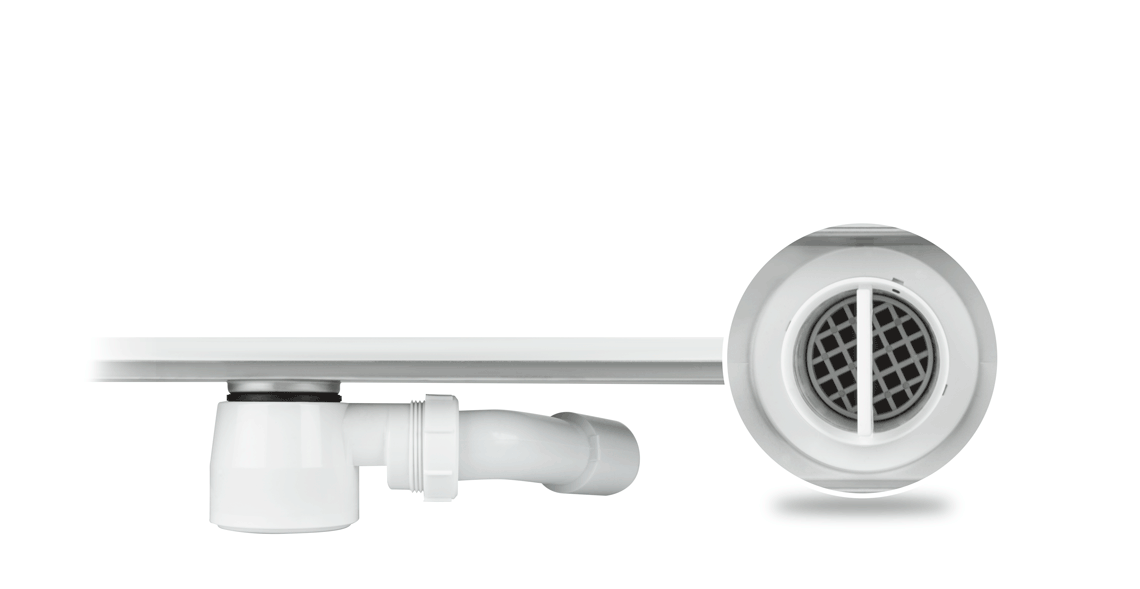 Montaža je enostavna in PVC odtok je zasnovan tako, da zaustavi pline iz kanalizacije.
