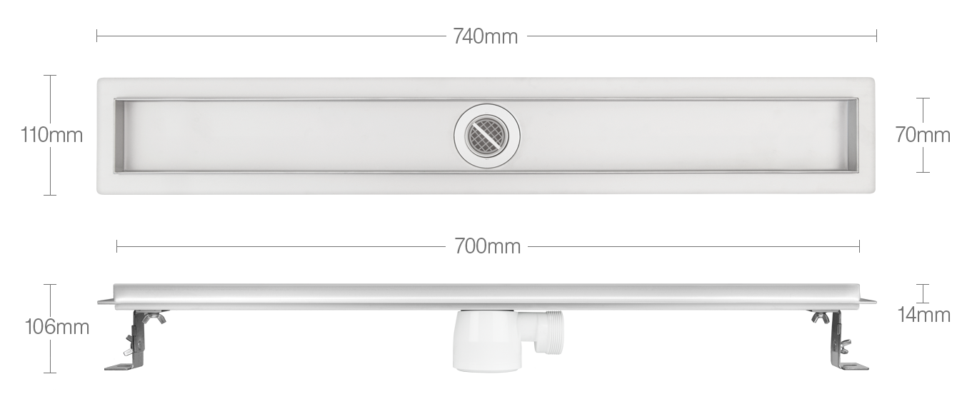 TUŠ INOX ODTOČNA KANALETA BALINE REGULAR / PURE 700 mm